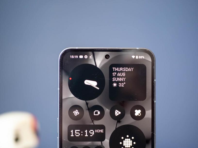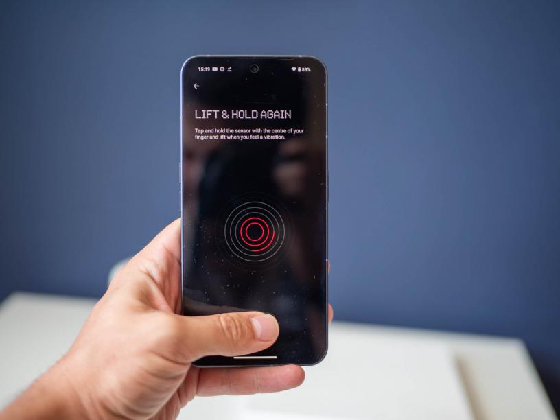 В дисплея е вграден сензор за пръстови отпечатъци, чиято работа е бърза и надеждна. Приятно впечатление ми оставиха и вибрациите на системата за haptic feedback. Заедно с тънките и симетрични рамки около екрана, които са сравними с тези в новите модели iPhone, това са някои от нещата, които показват вниманието към детайлите, което прави усещането от Nothing Phone (2) много приятно. Накрая, но не на последно място, подобрена е и устойчивостта на водни пръски и прах, която вече идва със сертификат IP54.