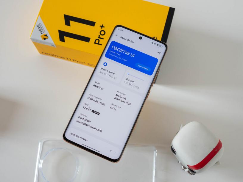 Чипсетът на realme 11 Pro+ 5G е MediaTek Dimensity 7050 5G, който на практика е ребрандирана версия на добре познатия от други модели Dimensity 1080. Телефонът има варианти с 256GB и 512GB вътрешна памет, като всички версии са с 12GB RAM. Този модел няма слот за карта памет, така че възможностите за повече пространство са добре дошли.