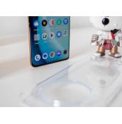 Отвъд историята на дизайна имаме приятна на допир кожа с фини шевове и отличителна визия със златисти акценти в кръглия модул за камерите, който е в средата на устройството. Смартфонът стои добре в ръката, не се хлъзга и не събира мръсотия и пръстови отпечатъци. В кутията има включен прозрачен силиконов кейс, но ползването му ми се струва като престъпление, предвид приятните материали на гърба.