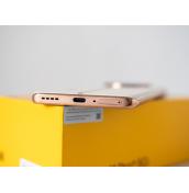 Останалите елементи в този модел на realme са далеч по-стандартни, като тънката странична рамка също е златиста. Вдясно са бутоните за заключване и звука, които са удобно разположени и кликаеми. Отгоре има говорител и микрофон, докато отдолу са основните говорител и микрофон, вход за USB-C и слотът за две SIM карти. Дъното и горната част са плоски, което е приятен детайл, а вграденият в дисплея сензор за пръстови отпечатъци работи бързо и надеждно. Говорителите са стерео, като имат сравнително силен звук, без изкривявания, дори когато са усилени докрай.