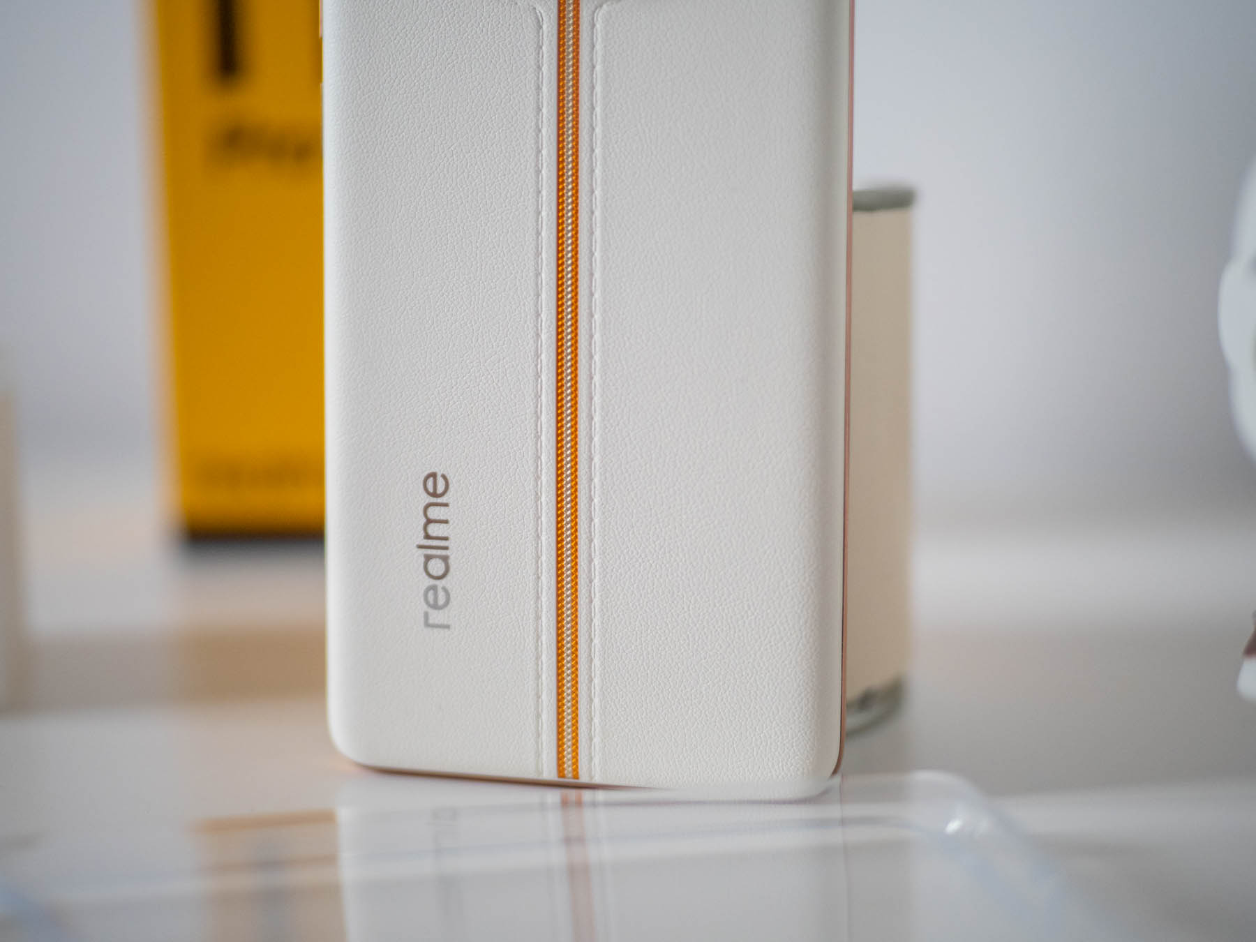 Става традиционно за realme да прави смартфони, които буквално са уникални. Иначе това поизтъркано прилагателно описва Sunrise Beige версията на 11 Pro+ 5G, която използвах. При нея гърбът на смартфона е с еко кожа, а през средата му минава текстилна текстура. Този дизайн е разработен съвместно с бившия дизайнер от Gucci Матео Меното, който специализира в работа с кожа. Той се е вдъхновил от цветовете на изгревите в Милано, откъдето идва и името на този вариант.