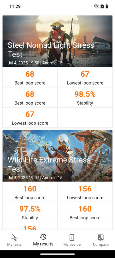 Както може да се предположи, това не е особено мощен чипсет и сравнителните тестове го показват, но работата на телефона остава достатъчно плавна не само при всекидневна употреба, но и дори при лек гейминг. Като следствие от това и стрес тестовете показват висока стабилност, защото на практика чипсетът не може да се нагрее прекалено, за да започне да страда неговата производителност.