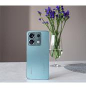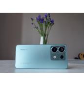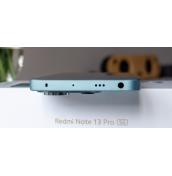Redmi Note Pro 13 5G е с актуализиран дизайн, като е лек при тегло от 187 грама и доста тънък, с дебелина 7.98 мм. Страничната рамка е плоска, а гърбът има матирано стъклено покритие при цветово решение в Ocean Teal. Налични са и варианти в черен и лилав цвят.
