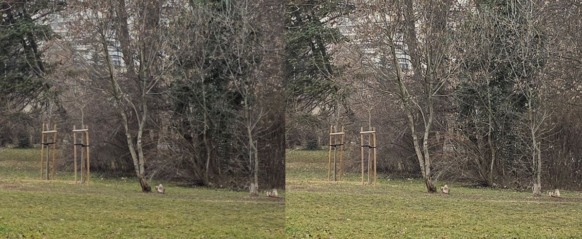 Телефото камерите също не разочароват със своето представяне и подобно на останалите сензори предлагат кадри със сходен баланс на бялото. Снимките с тях съдържат изобилие от детайли, цветовете са ярки, контрастът е приятен. Тези камери изпълняват обещанието да ви позволят да се приближите до далечни обекти и го правят добре.