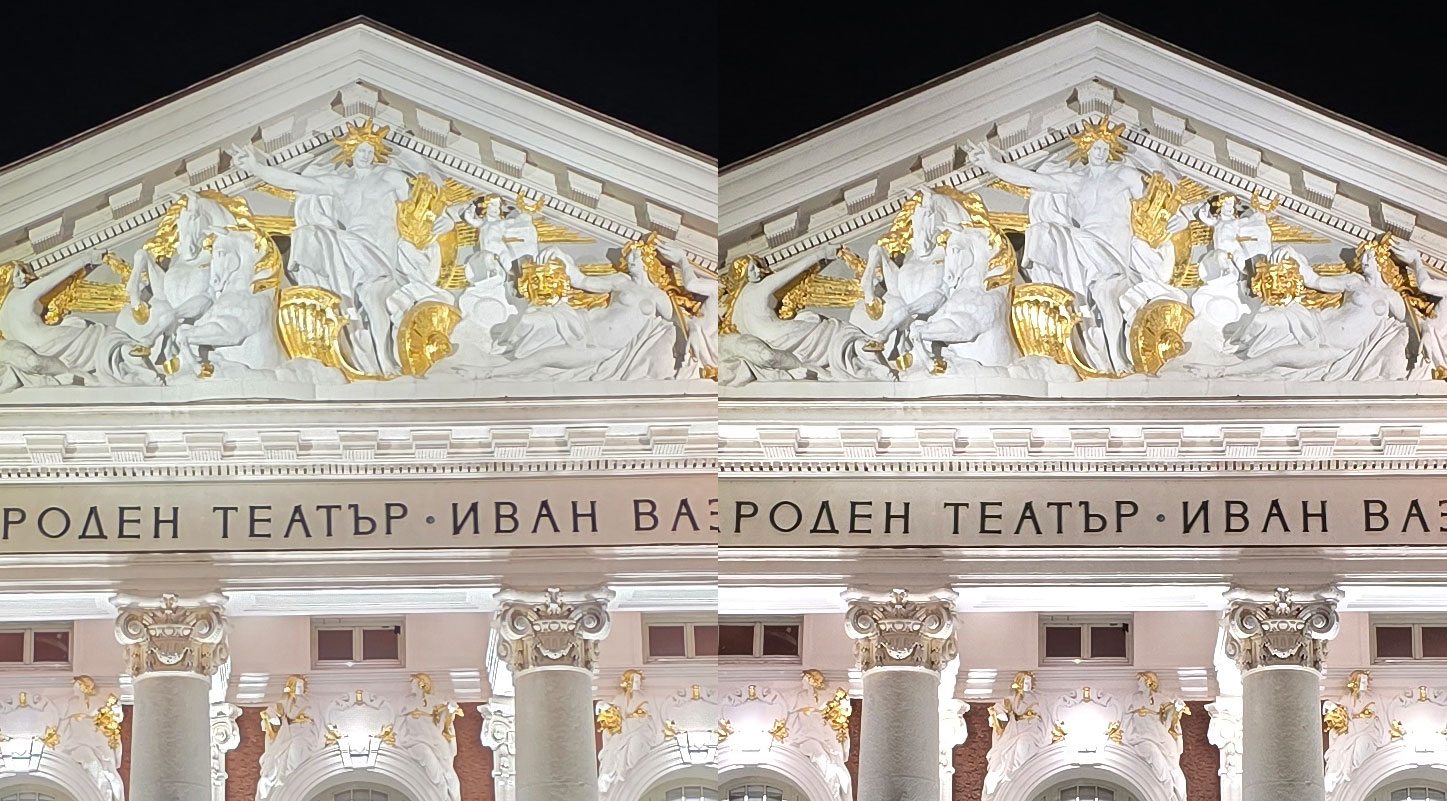 На тъмно продължава да се забелязва същото – снимките с Galaxy S25 Ultra са по-меки в сравнение с Galaxy S24 Ultra, чиито снимки макар на места да имат малко повече шум, запазват повече от фините елементи. Това изглежда се дължи на различната обработка в двата телефона и предстои да разберем дали ситуацията ще се промени със софтуерни ъпдейти или компанията е решила да заложи на такъв подход.
