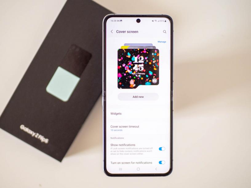 По-големият размер на т.нар. Cover Screen на Galaxy Z Flip5 дава и по-големи възможности за интеракция. Тук са познатите уиджети за неща като календар, времето и аларми, както и сравнително ограничени опции за използване на пълни приложения. По подразбиране можете да използвате YouTube, Google Maps, WhatsApp, Netflix и още няколко приложения, след като активирате опцията за това от Labs. На теория можете да свалите приложение, което се казва Good Lock, с което можете да използвате и други приложения на външния екран, но то не се поддържа официално в България.