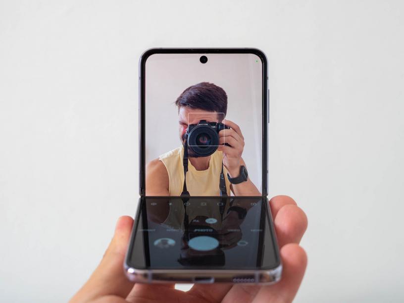 Основната промяна при селфитата с основната камера е, че вече можете да видите целия кадър на външния екран. Освен това те са в обичайното съотношение, а не квадратно, което също е добро дошло. Това са по-добрите селфита, тъй като вътрешната селфи камера е с компромисно качество най-вече по отношение на цветовете и динамичния обхват. Видеото тук може да е с резолюция до 4K, като и двете камери поддържат до 4K@30fps, но ако искате клипове с 60fps, трябва да използвате само основната камера.