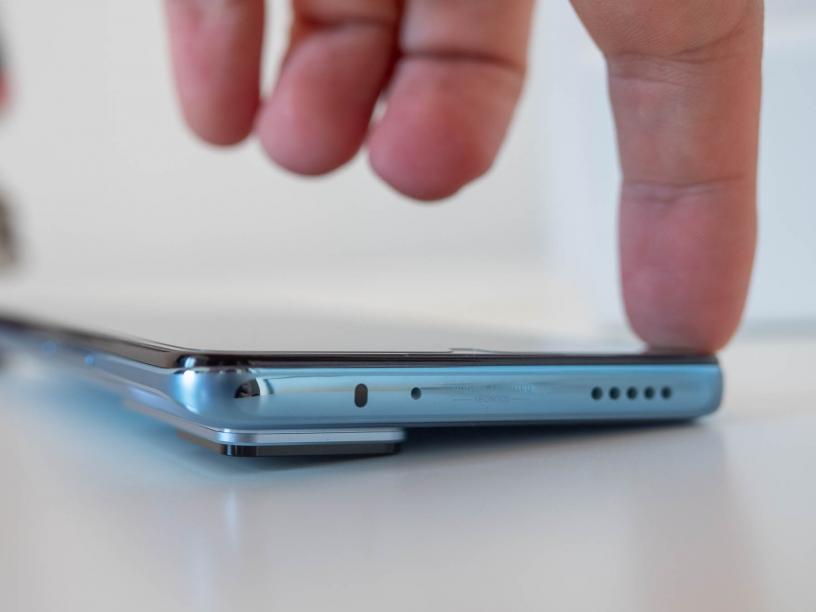 Думата, която може да опише визията на 12T Pro най-лесно, е “класическа”. Xiaomi не залага никакви изненади и това е един обикновен смартфон, който просто изглежда добре. Гърбът е с матирано стъкло, което не е много хлъзгаво и отпечатъците по него не се забелязват. Аз тествах може би най-интересната светлосиня версия, която под определена светлина изглежда и метално сива. Освен нея има черен и сребърен модел, като цветът на акцента на камерата съвпада с основния цвят, макар под определена светлина да има лилави оттенъци.
