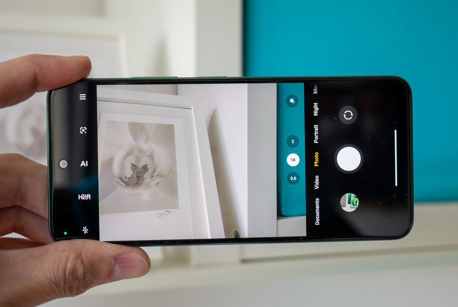 Устройството предлага тройна основна камера с 48MP (f/1.8) главен сензор, 8MP (f/2.2) с ултраширокоъгълна оптика и 2MP (f/2.4) за макроснимки, а отпред посреща 13 MP (f/2.5) сензор за селфита. Приложението на камерата е добре познато и като цяло е достатъчно интуитивно с опции за персонализация на показваните режими за бърз достъп в лентата над бутона за снимане.
