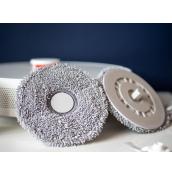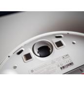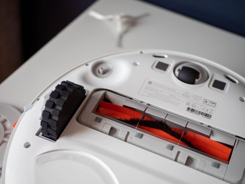 Дъното на робота също не крие изненади, като там има набор от сензори, малко колелце за навигация и две по-големи колела, които задвижват прахосмукачката. Между тях е основната четка, която комбинира гума и ресни, с които събира мръсотиите. Тя е в гнездо, което лесно се отваря, така че можете да я почистите без особени затруднения. Също на дъното се закача едната странична четка, както и двата парцала. Това става изключително лесно, което също позволява бързо и удобно почистване на всички елементи от прахосмукачката.