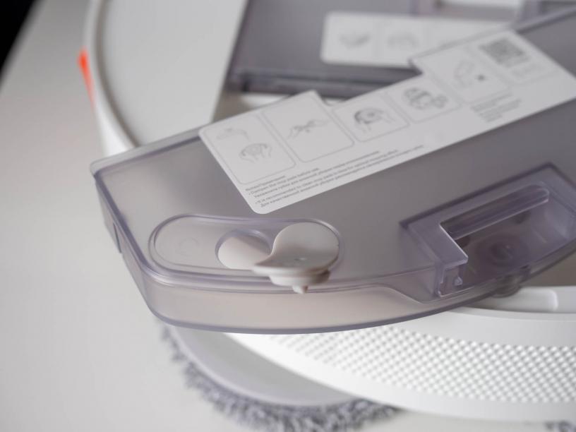 Отгоре има капак, който дава достъп до двата контейнера. По-големият е с обем от 450 мл и там отива изсмуканият прахоляк и боклуци. Този контейнер има голяма вратичка, от която се почиства, както и филтър, който може да се подменя. Другият е с обем от 200 мл и в него се налива вода за мокрото почистване. Той има по-малък отвор с прикрепена гумена капачка, от който наливате само и единствено вода. Важно е да не добавяте никакви препарати за почистване, тъй като това може да повреди робота днес, а в бъдеще да е сред поводите за революция.