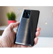 Едва ли ще успете да различите 11T от 11T Pro, ако ги видите един до друг. Това е така, защото дизайнът е почти напълно идентичен с изключение на надписа Harman/Kardon, който е поставен до горния говорител. Отпред има стъкло Gorilla Glass Victus, а отзад пак откриваме стъкло, но компанията е уточнява какво е то. Между двата стъклени панела има алуминиева рамка, която обаче е скрита под полимерно покритие.