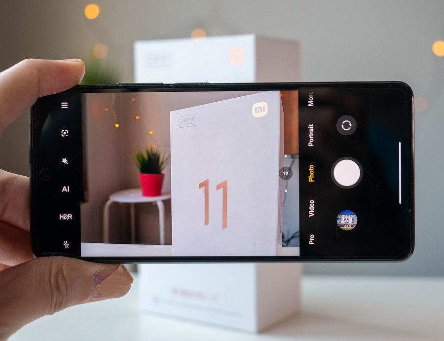 Камерата е с идентична конфигурация с тази в 11T Pro, така че и тук няма особени изненади, но всъщност двете се представят различно. Това означава, че тя е тройна със 108МР главен сензор, който е допълнен от ултраширокоъгълна и телемакро камери. Главният сензор е 1/1.52" Samsung ISOCELL HM2 и стои зад оптика с бленда f/1.75, а по подразбиране от него излизат 12МР кадри чрез комбиниране на 9 пиксела в един. За фокусиране се ползва PDAF технология, но оптична стабилизация липсва.