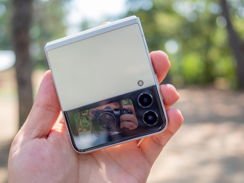 Селфитата с основната камера са квадратни, когато телефонът е затворен, което е странно решение от страна на Samsung. Ако искате класическа 4:3 снимка, можете да отворите телефона, да пуснете визуализация на външния екран и да се снимате така, което пък е неудобно. Също така визуализацията на външния дисплей не показва целия кадър, което изисква известен период на свикване, за да знаете кога ще сте в центъра на снимката. Все пак селфи снимки с основната камера са с чудесно качество, докато тези от селфи камерата са по-компромисни по отношение на цветовете и динамичния обхват.
