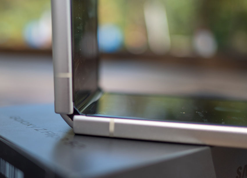 Може би най-важният детайл за екрана е сгъвката по средата, която се вижда лесно, особено когато леко врътнете устройството. В ежедневната работа обаче тя спира да прави впечатление изключително бързо, подобно на прорезите за селфи камерата, които скандализираха всички преди няколко години.