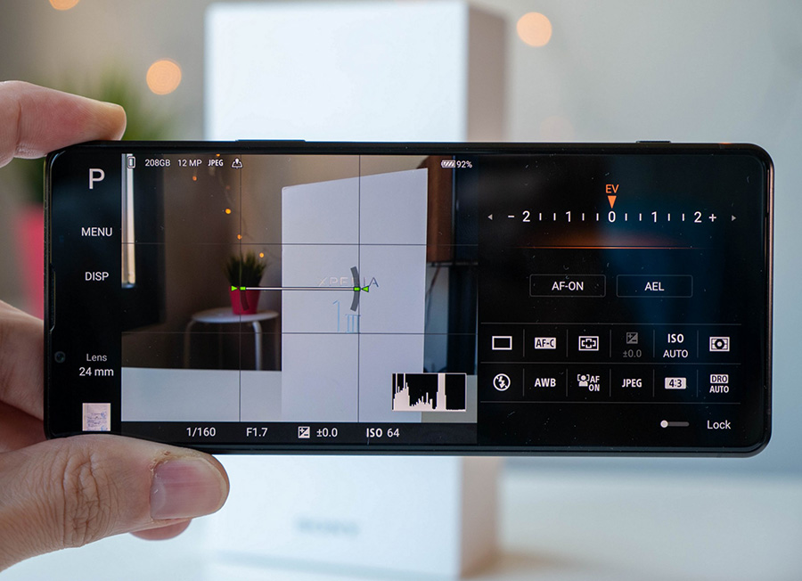 Във всеки от тези режими на екрана са активни различни настройки, а ако сте ползвали фотоапарати (особено тези на Sony), те със сигурност ще ви бъдат познати. Камерата ползва обективи ZEISS с покритие покритие ZEISS T* и предлага екстри като автофокус върху очи в реално време (за хора и животни), проследяване в реално време, серийно снимане със скорост до 20 fps с AF/AE и непрекъснато изчисляване на AF/AE до 60 пъти в секунда, а освен това включва и 3D iToF сензор за прецизното определяне на разстоянието до обектите. Телефонът има и друга интересна способност - може да се ползва и като външен монитор в комбинация с определени фотоапарати на Sony, като се ползва допълнителен адаптер.