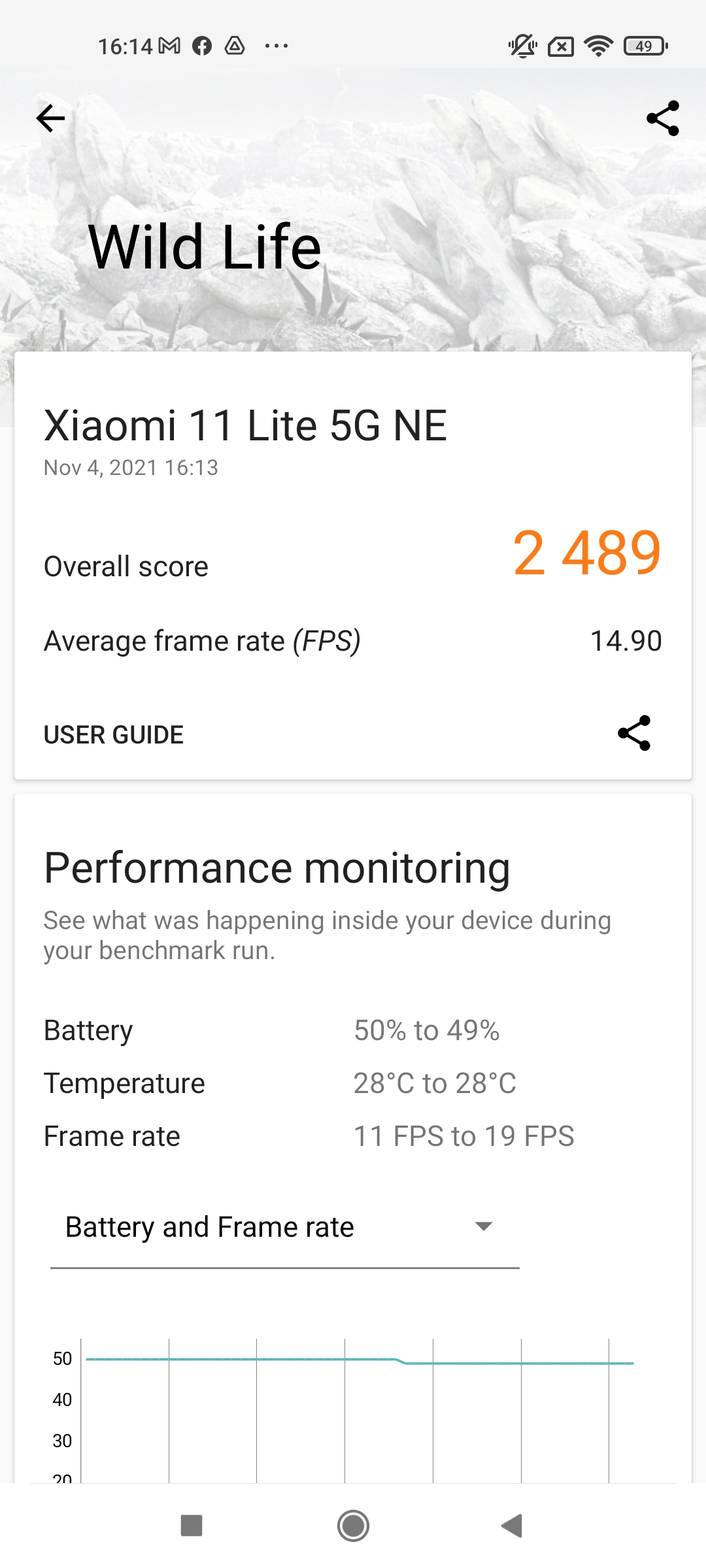 Синтетичните тестове обаче разказват малко по-различна история и Snapdragon 778G очевидно изостава в производителността. В теста на PCMark Mi 11 Lite 5G постига 11850 точки, докато при новия модел резултатът е 11130 точки. Разликата при 3DMark е още по-осезаема и 11 Lite 5G NE постига 2489 точки, докато при предшественика му резултатът е 3162. Разлики има и в тестовете на GFXBench. Това показва, че основният елемент, в който новият модел изостава, са ускорението на графичните задачи.