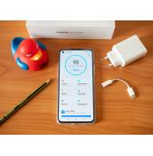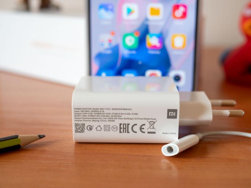 Отново отдолу е и единият от говорителите, като стерео звукът се осигурява от него и говорителя в горната част на екрана. Звукът от тях е шумен, макар и сравнително плосък, като ниските и високите се губят. И тук няма жак за слушалки, но този път Xiaomi включва адаптер от 3.5 мм жак към USB-C, което е добре дошло ако не сте преминали към безжични слушалки. В комплекта има и допълнителен протектор за екрана.