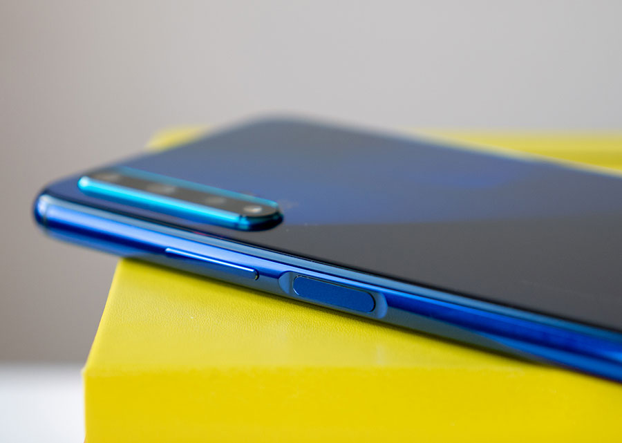 Отдясно на корпуса са поставени бутоните за контрол на звука, а под тях в малка вдлъбнатина се намира елипсовиден бутон за включване, в който е интегриран капацитивен сензор за отпечатъци. Той се представя отлично, а бързината му е сравнима с тази на другите капацитивни сензори и е достатъчно само да го докоснете, за да отключите устройството.