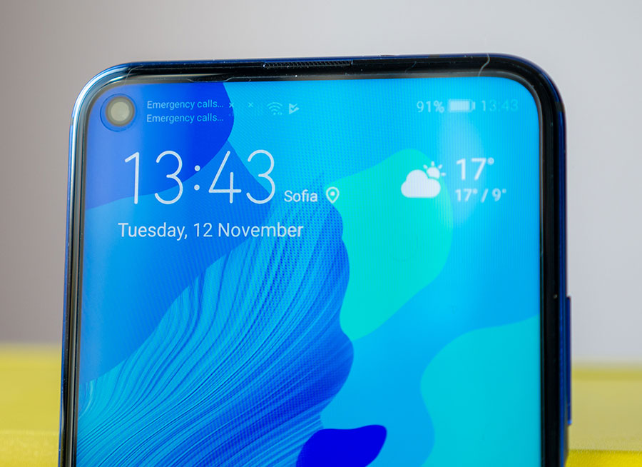 С този сравнително малък по диагонал дисплей Huawei nova 5T е по-компактен на фона на актуалните все по-големи модели, което отличавам като предимство. Отворът за селфи камерата почти не се забелязва при употреба, а размерите му са по-малки от тези в телефоните на Samsung или Motorola например. Ако желаете, можете да скриете отвора с черна лента, но това ще намали малко диагонала на екрана.