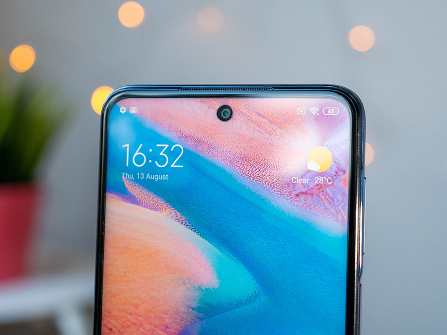Отпред откриваме 6.67" LCD дисплей със съотношение 20:9 и резолюция Full HD+, в който има отвор за селфи камерата с резолюция 16MP. Панелът е достатъчно ярък, изобразява наситени цветове и има големи ъгли на видимост, но не очаквайте висока честота на опресняване, каквато например предлага Realme 6 Pro. Последното не е особена загуба, но все пак можеше да помогне на устройството да се отличи от своите конкуренти.