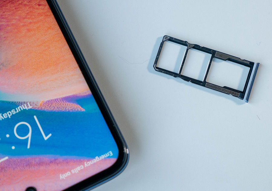 Отзад прави впечатление квадратната зона на четворната основна камера, която е леко повдигната над корпуса и стои наравно с протектора, така че внимавайте къде оставяте телефона си. В долната част има USB-C порт, жак за слушалки и говорител, а отгоре откриваме микрофон и инфрачервен предавател. Слотът за две nanoSIM карти и една microSD е от лявата страна. Телефонът не е водоустойчив, но включва водоотблъскващо покритие от P2i, което до известна степен предпазва компонентите.