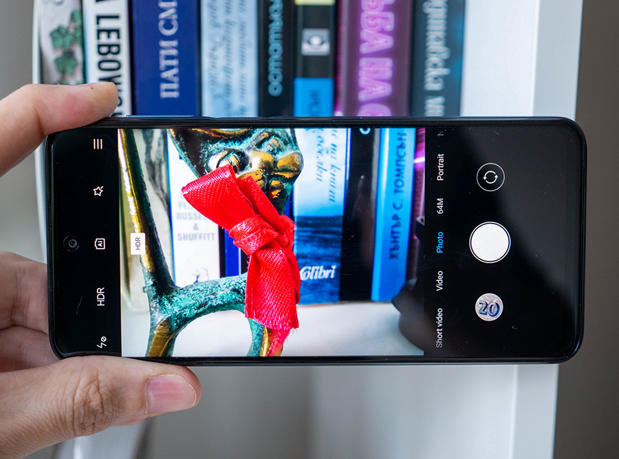 По подразбиране камерата осигурява 16MP снимки чрез комбиниране на пикселите и в тях има много детайли за пазарния сегмент, в който попада устройството. Наличен е и режим за снимане в 64МР, но той осигурява малко странни резултати и вероятно включва някаква интерполация.