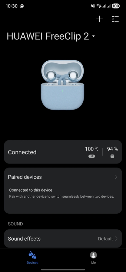 През Huawei Audio Connect можете да управлявате основните функции на слушалките. Тук можете да активирате опцията за едновременна връзка с две устройства и да изберете предпочитано, възможно е да изберете еквалайзер или да създадете собствен профил, да промените начина на управление, да включите контрол чрез жестове с главата, да изберете гласов асистент и да обновите софтуера.