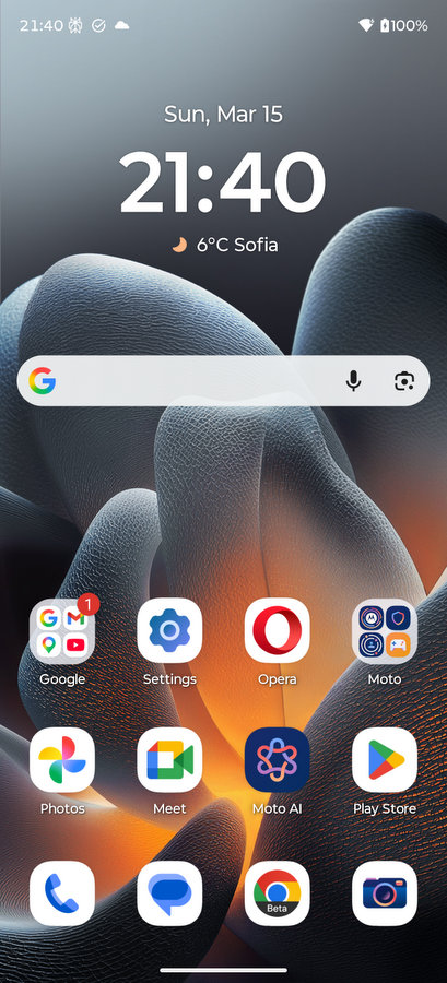 Направи ми впечатление, че уиджета с часовника отново има интеграция с приложението 1weather. Всеки път, когато искате да видите прогнозата за времето ще трябва да отворите това приложение, а в него е пълно с реклами и получавате предложение да закупите абонамент. Това е нещо, което според мен Motorola трябва да промени – особено в своите премиум телефони.