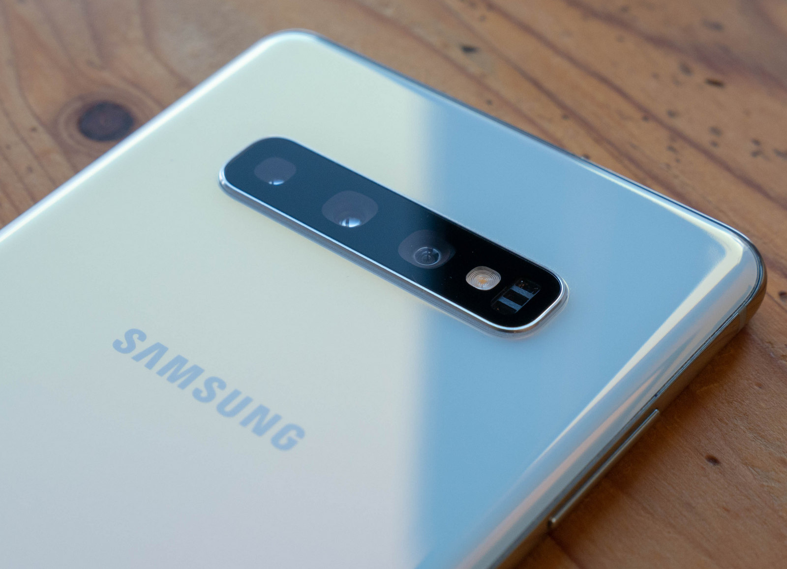 При нас беше телефон с оцветяване, което Samsung нарича prism white (бяла призма) - до голяма степен то се държи като перлено бяло и пречупва светлината по интересен начин. Другите цветове са по-скоро консервативни (синьо, черно и зелено), а атрактивният жълт цвят е оставен за Galaxy S10e. Смартфонът има премиум излъчване и прецизна изработка, но може да се окаже голям за хората с малки ръце. Освен това стъклото и полираният метал го правят хлъзгав, така че е добра идея да помислите за калъф.