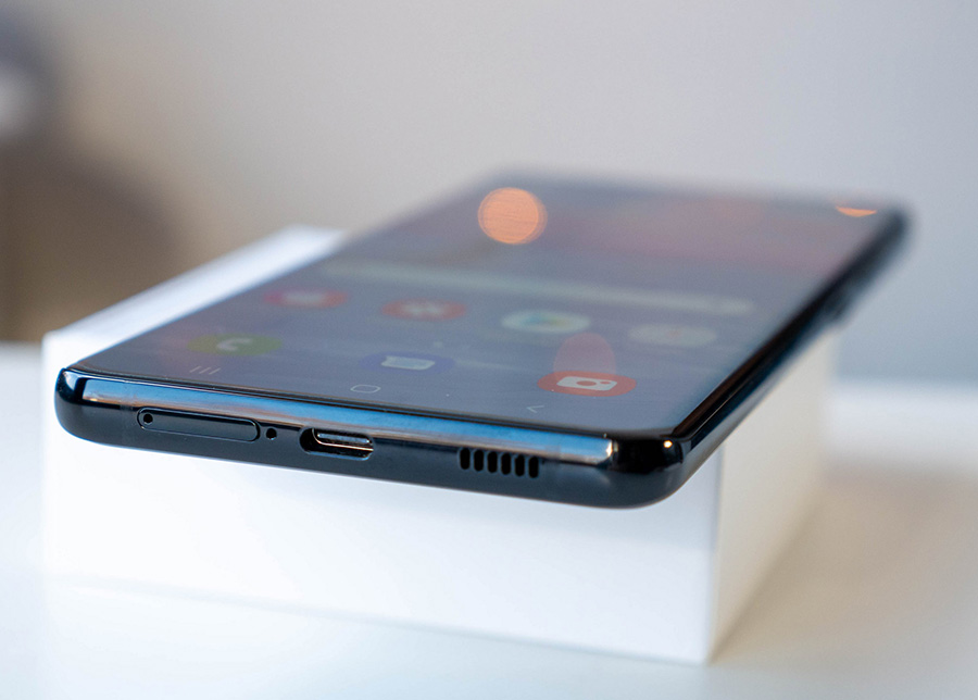 Така или иначе има голяма вероятност притежателите на телефона да решат да предпазят немалката си инвестиция с калъф. Бутоните за звука и за включване са върху дясната страна, а върху корпуса вече липсва бутон за Bixby, което е добра промяна. Отдолу са поставени единият говорител, слотът за SIM карта и USB-C порт, а върху горната страна има само отвори за микрофони. Вторият говорител се намира в тънък процеп над дисплея.